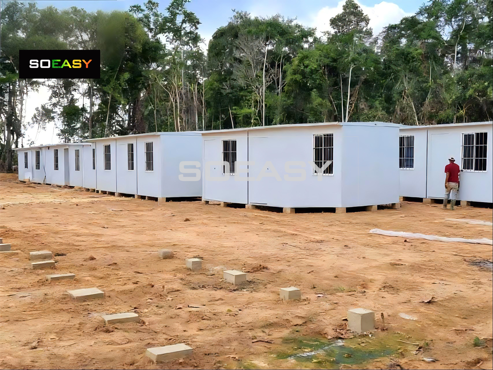 Advantage: Because the client's project site has a long distance and the ground is muddy, the crane can't be use, our Expandable Tiny House install without the crane, 2 minutes can build one house , one day complete the big labour camp, so the clients are very satisfied with our this new exclusive product