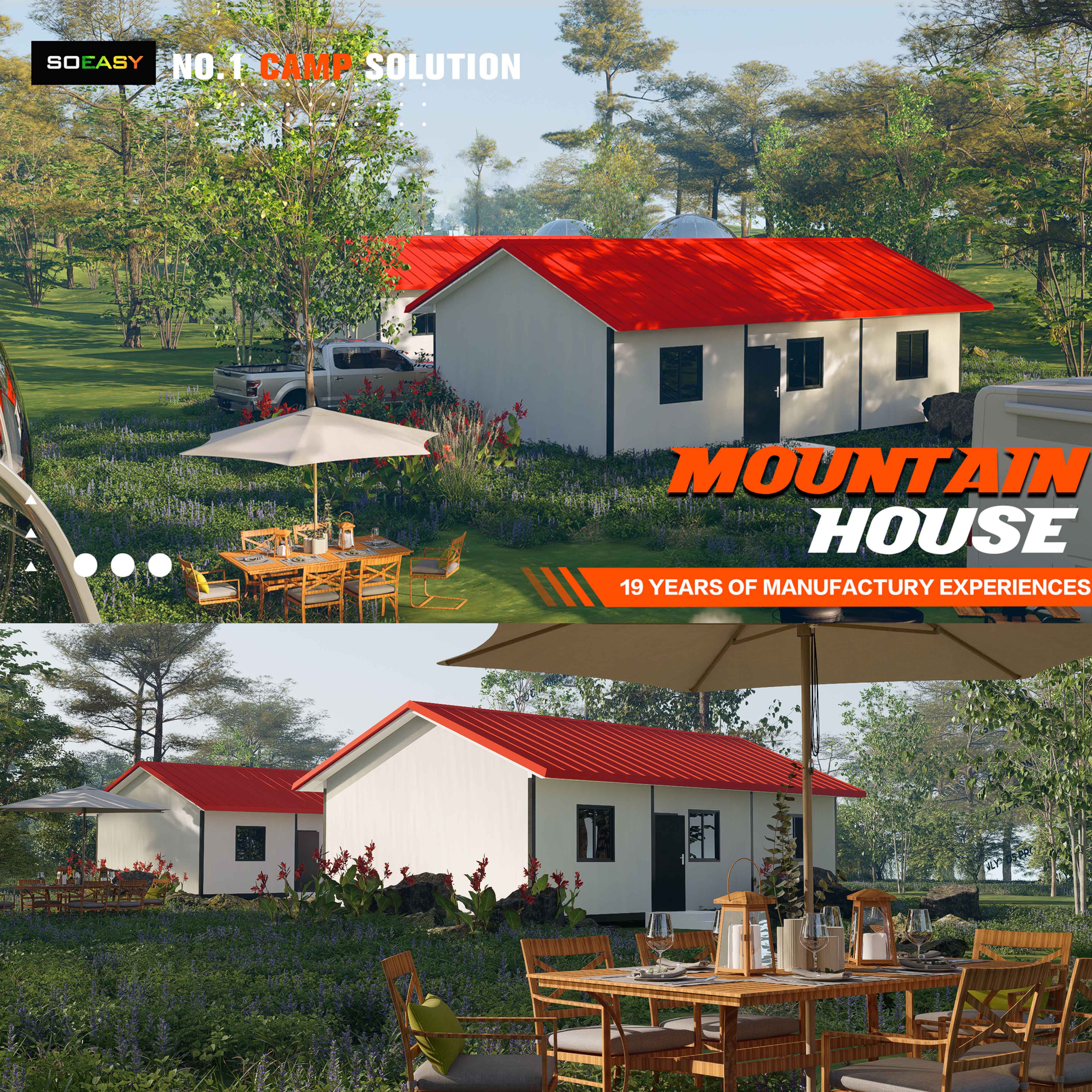 Unistus elada mägedes ei nõua enam pikka aega ainsa läbirääkimiste elemendina. Kokkupandava koostu valimine tähendab valikut võtta omaks looduse emotsionaalne kutse kaasaegse inseneri ratsionaalse jõuga. Suurepäraste mägede ja põldude keskel laske tõhusa ehituse tarkusel ja rahuliku elamise poeesial üheskoos koostada liigutav peatükk ideaalsest tulevikust – kui kiiruse mootor juhib unistust kohale jõudma, ootab see rahulik mägede maastik täiuslikus kehaasendis teie naasmist.