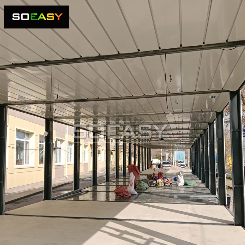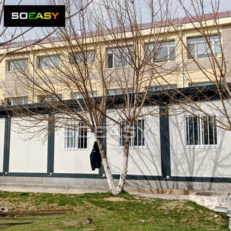 Is é ceann de phríomhghnéithe an Tí Coimeádán Pacáiste Comhréidh seo ná a dhearadh dhá urlár, díríonn sé ar éifeachtúlacht spáis a uasmhéadú, le conairí agus staighrí chun éascaíocht gluaiseachta agus maireachtála pobail a chinntiú. Ligeann an leagan amach seo spásanna maireachtála a eagrú níos fearr agus feabhsaíonn sé feidhmiúlacht iomlán an struchtúir. Beidh go leor spáis ag oibrithe chun bogadh thart agus a ngníomhaíochtaí laethúla a dhéanamh laistigh de theorainneacha an tí coimeádáin.